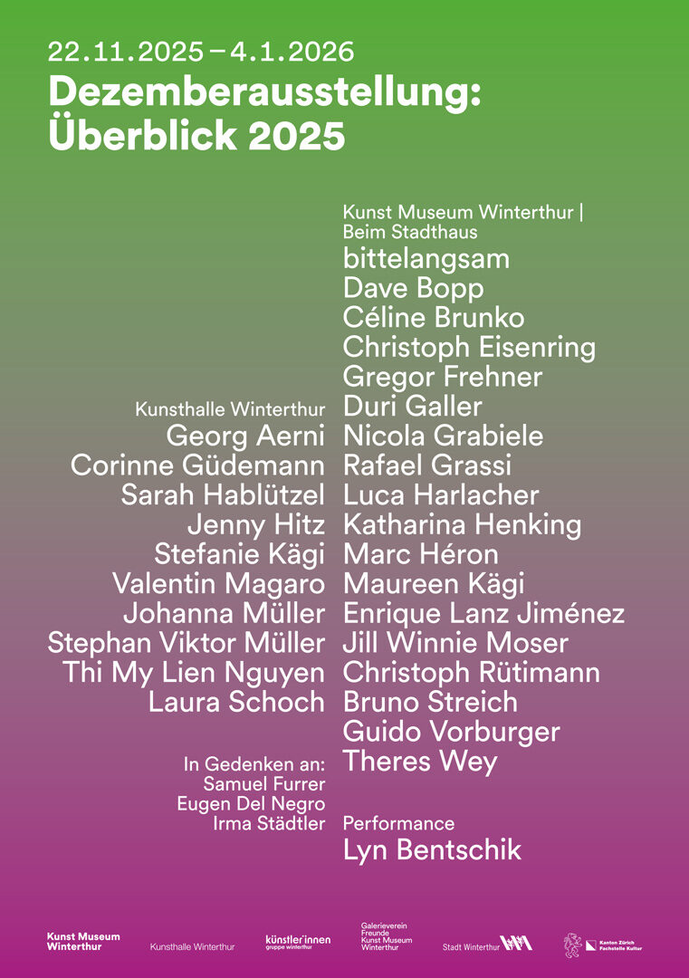 Dezemberausstellung: Überblick 2025, Kunsthalle Winterthur und Kunst Museum Winterthur I beim Stadthaus, 23. November 2025 – 4. Januar 2026